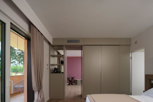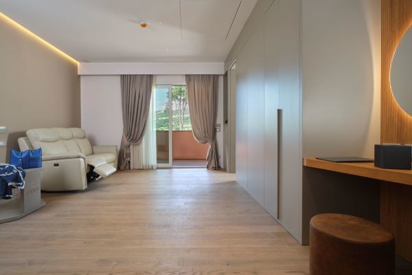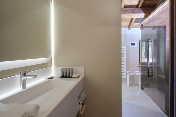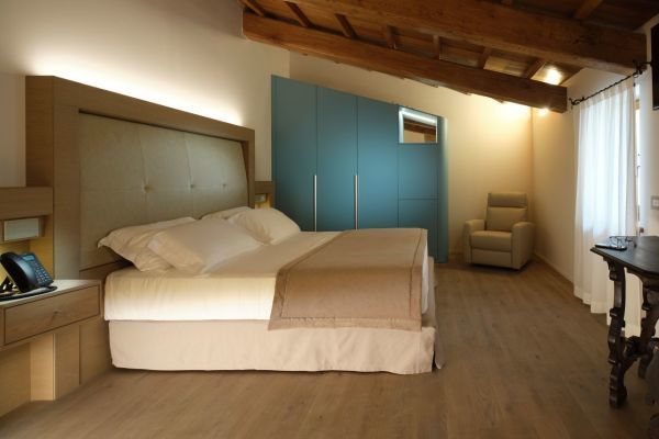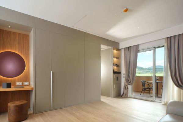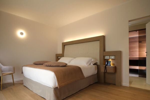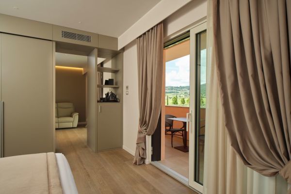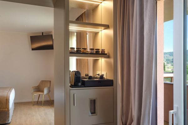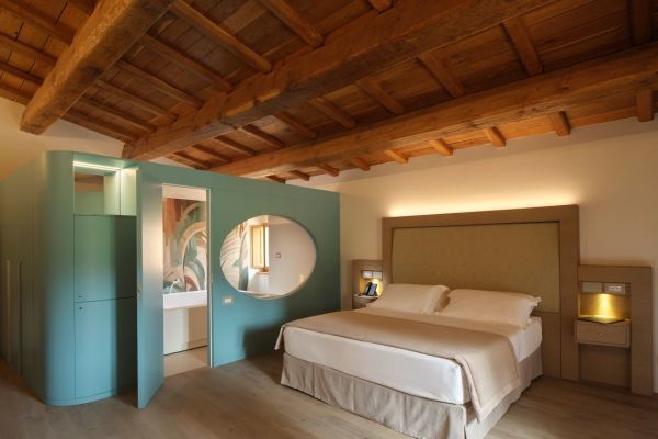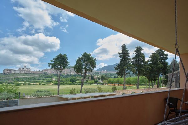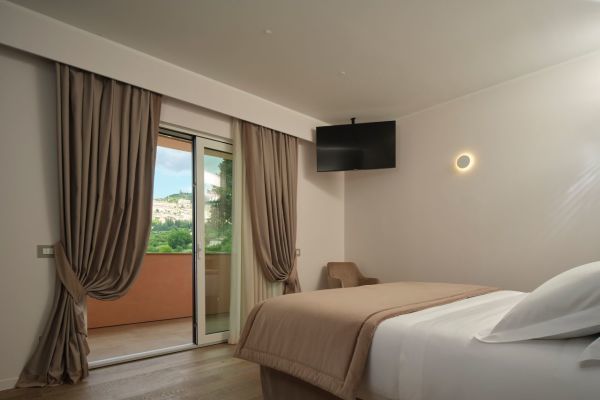 Le camere si dividono in: Junior Suite: conservano il fascino dei tempi passati, tra legno, mattoni e la rarità della pietra rosa d’Assisi che donano fascino senza tempo alle camere semplici ed eleganti, funzionali ed intime.Completano la personalità delle camere un bagno dotato di sauna e doccia multifunzionale. Suite: luminose ed eleganti, dal design moderno e funzionale, le suite accolgono ospiti in un confortevole living open space di semplice eleganza, che si apre su un’ampia vetrata e terrazza con vista su Assisi, perfetta per rilassarsi e per ammirare la rara bellezza della città medioevale.Una doppia armadiatura fornisce l’accesso alla spaziosa ed intima zona notte separata con accesso diretto al bagno privato dotato di sauna, bagno turco e doccia multifunzionale.Sono tra le suite più panoramiche con un lungo balcone che sembra sospeso nel vuoto.Da lì si può ammirare l’intera città, dal sorgere del sole, al tramonto, alle notti stellate, in un disegno surreale che toglie il respiro. Superior Suite: in una fusione di legno, mattoni e pietra rosa di Assisi questa suite di lusso conserva il fascino del luogo, calda ed elegante, rigorosa ed accogliente con nuance di colore antichi che donano personalità all’ampia camera matrimoniale con vista sulla città che dialoga con la bellezza dell’intima zona dotata di vasca idromassaggio.Completa la funzionalità della suite un bagno dotato di sauna, bagno turco, doccia multifunzionale e vasca idromassaggio.