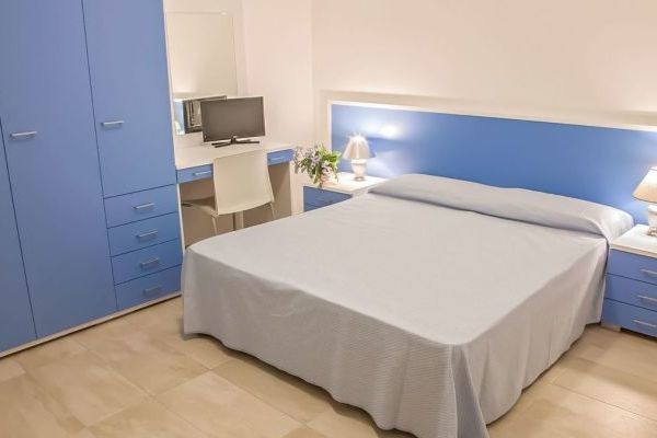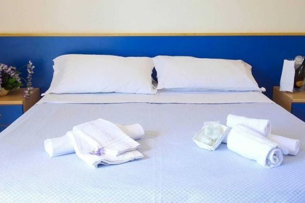 Le 128 camere, distribuite tra il corpo centrale e la zona mare, sono progettate per offrire comfort e praticità. Tutte le sistemazioni sono dotate di:Servizi privati con box doccia e asciugacapelli, aria condizionata, mini-frigo, cassaforte, TV e Balcone (al primo piano) o patio (al piano terra).Esse si dividono in: Matrimoniali (massimo 2 pax); Triple (massimo 3 pax) e Quadruple (massimo 4 pax).