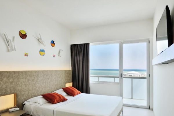 QUADRUPLA VISTA MARE: La camera quadrupla con vista mare è pensata per le famiglie che cercano un soggiorno confortevole e rilassante in riva all’Adriatico, da cui ammirare direttamente la spiaggia e la celebre Rotonda a Mare di Senigallia. Offre asciugacapelli, cassaforte, minibar, Tv Sat, wi-fi e aria condizionata. Arredate con gusto e cura dei dettagli, in stile moderno e confortevole, pensata per garantire un’atmosfera intima e riposante dopo una giornata di mare o di visite in città.