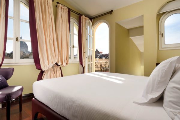 Le camere sono divise in: Indipendentemente dalla tipologia, sono tutte caratterizzate da: pavimenti e mobili in mogano, bagni in marmo con vasca oppure doccia, bollitore, TV Sat., Wi-Fi, aria condizionata/riscaldamento, minibar, Set stiro. Superior: pavimento in parquet e rigore geometrico offrono un ambiente accogliente e sofisticato. Le camere si affacciano sulle vie del centro città oppure nelle corti interne di antichi palazzi fiorentini. Deluxe: le camere Deluxe si affacciano sulle storiche vie fiorentine o su scorci di nicchia (quali: Cappelle Medicee e Croce del Trebbio); hanno tutte ampie scrivanie, arredi in cuoio raso e velluto rendendo il soggiorno confortevole e di classe. Deluxe Vista: vantano di viste mozzafiato sulla Piazza e sulla Chiesa di Santa Maria Novella, oppure dul Duomo di Firenze. Il bagno dispone di vasca e doccia integrata Suite: ispirate a pezzi rari delle collezioni di orologio vintage. Composte da una camera da letto principale, un salotto accessoriato con divano e tv. Si affacciano sulle tipiche corti degli edifici rinascimentali fiorentini. Junior Suite: Composte da un’area living con angolo studio e un confortevole divano.Suite Duplex: dislocate su due livelli con camera da letto e bagno al primo piano, e zona living con divano letto al piano superiore. Si affacciano sul centro storico della città.Suite Terrazza Privata: ideale per un soggiorno romantico. Distribuita su due livelli: accoglie gli ospiti con un ingresso dotato di un confortevole salottino, completo di divano e TV. Al piano superiore si trova la camera da letto, affacciata direttamente sul Duomo, con accesso esclusivo a una splendida terrazza panoramica privata.Suite Acciaio con vista Duomo: ispirata al primo orologio da polso astronomico "Patek Philippe 1518 Acciaio" con accesso esclusivo alla terrazza privata da cui poter ammirare Firenze. Composta da: spaziosa camera da letto con alto soffitto a travi, salotto accessoriato con divano in velluto, TV LCD, area da lavoro ed elementi di classe in acciaio e cuoio. Family Room: dispone di due spaziose camere da letto, pavimento in parquet; si affacciano sulle vie del centro città.
