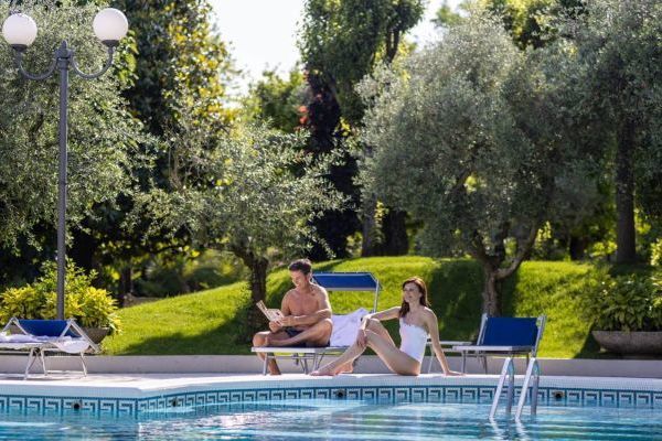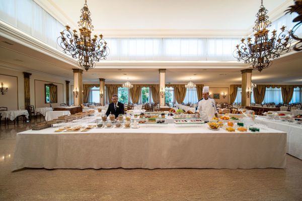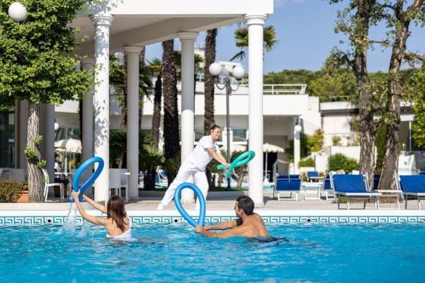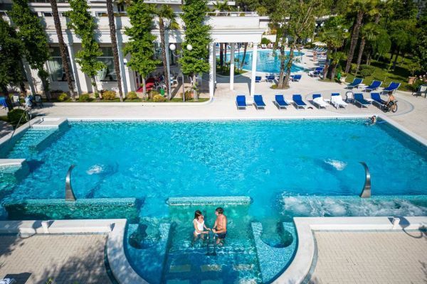 Un concetto di hotel termale unico al mondo. Che unisce la prima clinica al mondo per riabilitazione in acqua termale allo stile, ai servizi e al gusto di un hotel 4 stelle. Il tutto contornato dalla splendida natura del parco, dal beneficio delle piscine termali, dalle infinite possibilità di benessere e di bellezza della Spa. L’elemento naturale alla base delle terapie e dei trattamenti è l’acqua termale salso bromo iodica, che sgorga a 86°C da un pozzo all'interno del terreno dell’hotel. Prima di essere convogliata nelle piscine viene raffreddata per arrivare a una temperatura gradevole e funzionale alla balneoterapia. Il Centro Idrokinesis, con le piscine termali dedicate alla riabilitazione e la palestra subacquea, spazi dove svolgere terapie e attività con i personal trainer e i fisioterapisti. E poi le due piscine esterne e quella coperta, a disposizione di tutti gli ospiti dell’hotel, con gli idromassaggi e i percorsi benessere. Centro Idrokinesis, il primo centro di riabilitazione in acqua termale d’Europa comprende una grande vasca riabilitativa e due vasche private oltre che una palestra riabilitativa e una zona dedicata alle terapie manuali e alla fisioterapia. Ambulatori medici di tutte le specializzazioni. La Spa unisce benessere, sport, fitness e relax. Una concezione che affianca i trattamenti e i rituali termali alle attività di ginnastica e sport in acqua termale e con personal trainer. Al Garden Restaurant, dal buffet della colazione alla cena à la carte è un susseguirsi di fresche specialità della cucina italiana. E durante la giornata, niente di meglio di un momento di gustoso relax al Bellevue Bar: può essere un cappuccino o una tisana, un estratto di frutta o un cocktail, l’importante è goderselo rilassandosi sulle poltroncine con vista sul parco.