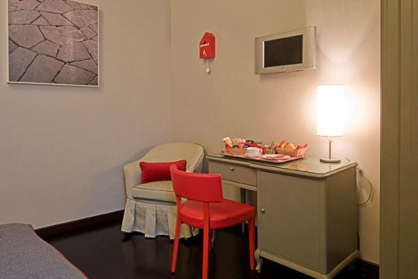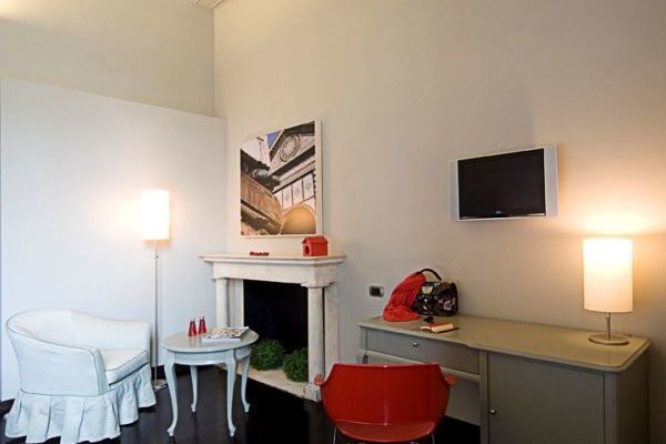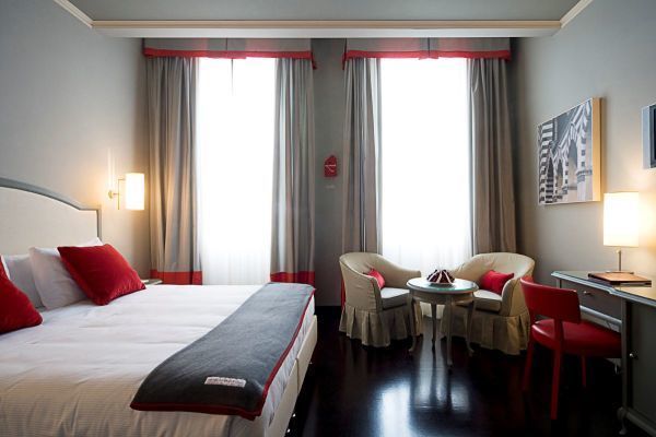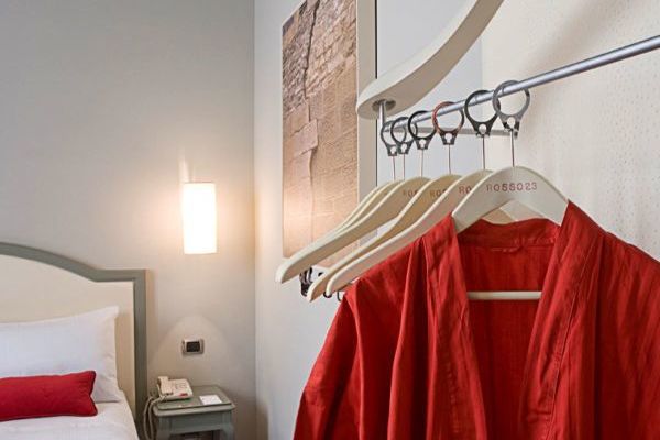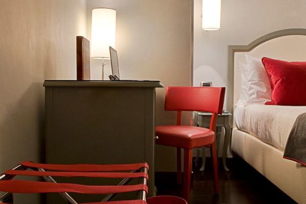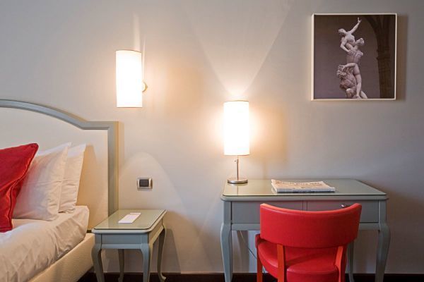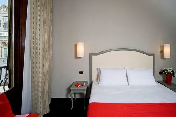 Luminose, colorate di rosso, grigio e bianco, con un arredamento essenziale ma completo; alcune dispongono anche di comodo angolo studio, poltroncine e camino. Sono tutte comode, accoglienti e dotate dei più moderni comfort e servizi, prodotti da bagno originali e vanity set. La tipologia di camere è divisa in: French: sono sistemazioni facili e veloci, ideali per un weekend a Firenze per una clientela giovane e dinamica.Sono dotate di letto matrimoniale alla francese, garantiscono tutti i confort moderni, come connessione wi-fi open e tv a schermo piatto e bagni privati con doccia. Classic: sistemazioni eleganti e semplici allo stesso tempo, le loro finestre offrono un punto di vista romantico sulle tipiche corti interne degli antichi palazzi fiorentini.Le camere Classic sono composte da zona notte con letto matrimoniale, o due letti singoli, postazione lavoro, bagno privato con doccia o vasca. Superior con vista: sistemazioni con un ambiente contemporaneo e confortevole grazie ad una comoda zona notte dotata di letto matrimoniale, o due piazze singole, angolo studio con scrivania, salottino e perfino un camino (possibilità di aggiungere un terzo letto singolo).Carratteristica distintiva di questa tipologia di camere è la meravigliosa vista sulla bellissima piazza e sulla Chiesa di Santa Maria Novella, permettendo di entrare nell’atmosfera fiorentina.