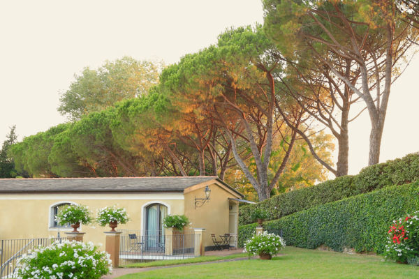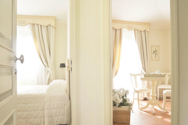 JUNIOR SUITE 2 PERSONE: Camera per 2 persone (circa 35 mq), arredata elegantemente, con vista sul giardino e sulla piscina. Ogni camera dispone di un angolo soggiorno, una vasca con doccia, telefono diretto, mini frigo, Tv sat, cassaforte, asciugacapelli, aria condizionata, wi-fi, terrazzino o patio privati.