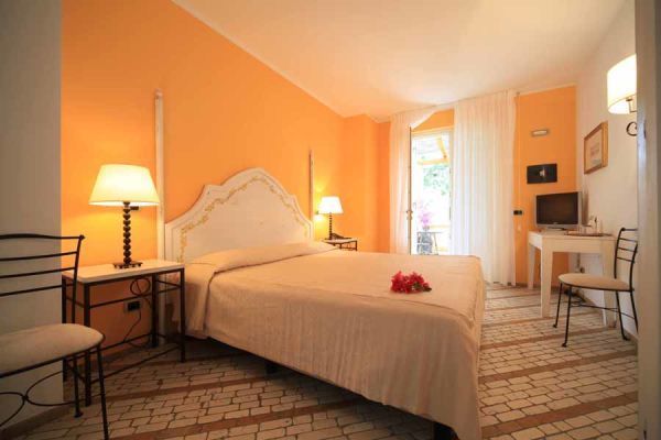 22, con servizi privati (alcune con doccia o vasca idromassaggio), phon, telefono, tv-sat, Wi-Fi, climatizzazione centralizzata, frigobar, cassaforte e terrazza. Si suddividono in: classic con vista giardino (2/4 posti); classic con vista mare (2 posti); deluxe vista mare (2 posti), ai piani superiori, con terrazzo e solarium privato, vista sul mare e sulla baia di Marina Lunga; junior suite (2/4 posti), ai piani superiori, molto spaziose, con divano letto nella zona salotto, terrazzino privato e vista mare. 2 camere (classic vista giardino) adatte ai diversamente abili.