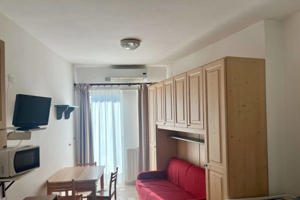 MONOLOCALE 3 PERSONE: Monolocale per 3 persone di circa 28 mq con angolo cottura, camera soggiorno con divano letto più estraibile, letto supplementare.