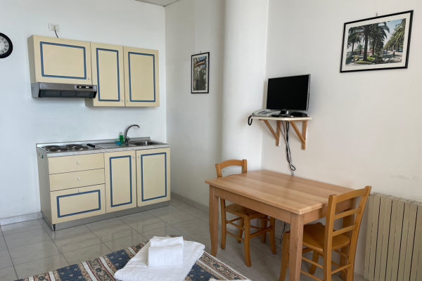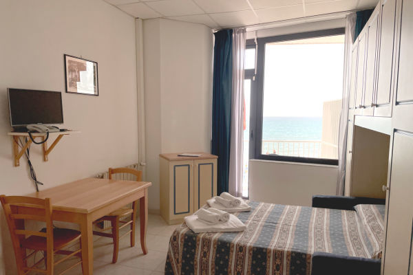 MONOLOCALE 2 PERSONE VISTA MARE LATERALE: Monolocale per 2 persone di circa 25 mq, con una piacevole vista mare laterale. Dispone di angolo cottura, camera soggiorno con divano letto più estraibile.