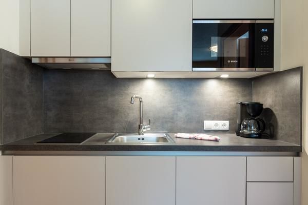 Cucina: Angolo cottura, Fornello a gas/elettrico, Lavastoviglie, Macchina per il caffè, Frigorifero, Microonde, Bollitore, Arredo di base cucina
