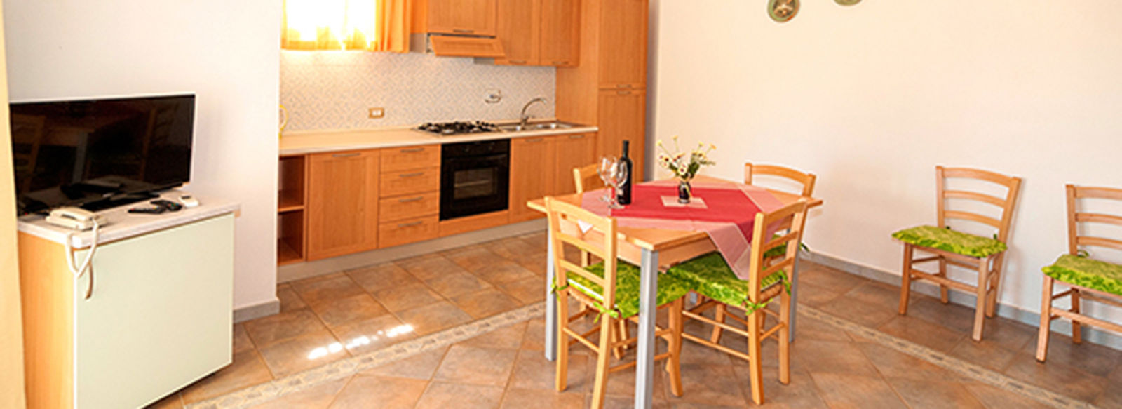 Gli appartamenti, semplici e confortevoli, dispongono di patio o terrazzo arredato con tavolo e sedie, servizi privati, asciugacapelli (su richiesta), biancheria da letto e da bagno (cambio biancheria su richiesta a pagamento), aria condizionata, angolo cottura, divano letto e Tv.